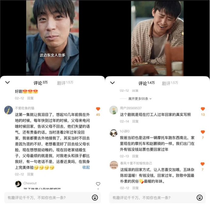 更具行业意义的是,短剧内容的创新升级激活了用户自发传播与情绪互动,让短剧从“被动观看”变为“主动分享” ,《北往》中摩托返乡、仗义助人的片段刷屏社交平台,无数网友结合自身返乡经历留言评论,“这就是我回家的路”“这一幕看哭了”,让剧集成为春运情绪的集体出口。