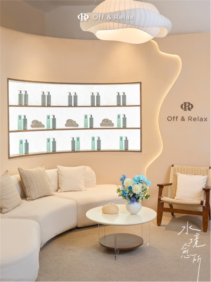 为让消费者直观感受SPA级奢护体验,Off&Relax于上海愚园路1018号打造的品牌线下慢闪空间「水境愈所」同步焕新为蓬松主题,以「水之哲学」构建五感沉浸式场域,实现从线上产品到线下体验的延伸。